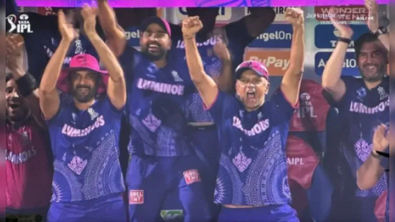 वैभव सूर्यवंशी ने आईपीएल करियर का पहला शतक लगाते ही इतिहास रच दिया. 94 के स्कोर पर खेल रहे वैभव ने जैसे ही लेग साइड में छक्का लगाया जिसके बाद पूरा स्टेडियम इस ऐतिहासिक पारी को सलाम करता हुआ नजर आया मानो जश्न का ऐसा नजारा कभी स्टेडियम में दिखा ही ना हो 14 साल के होनहार खिलाड़ी ने ऐसी कमाल पारी जो खेला. इस जश्न के दौरान की सबसे अलग तस्वीर वो दिखी जिसमे राहुल द्रविड़ जो पैर में चोट की वजह से व्हील चेयर का सहारा लेते हुए कई दफा नजर आए, उन्होंने अपने दर्द की परवाह किये बिना उसे भूल कर उठ खड़े हुए और युवा खिलाड़ी का हौसलाअफजाई किया, जिसका वीडियो सोशल मीडिया पर वायरल हो रहा है